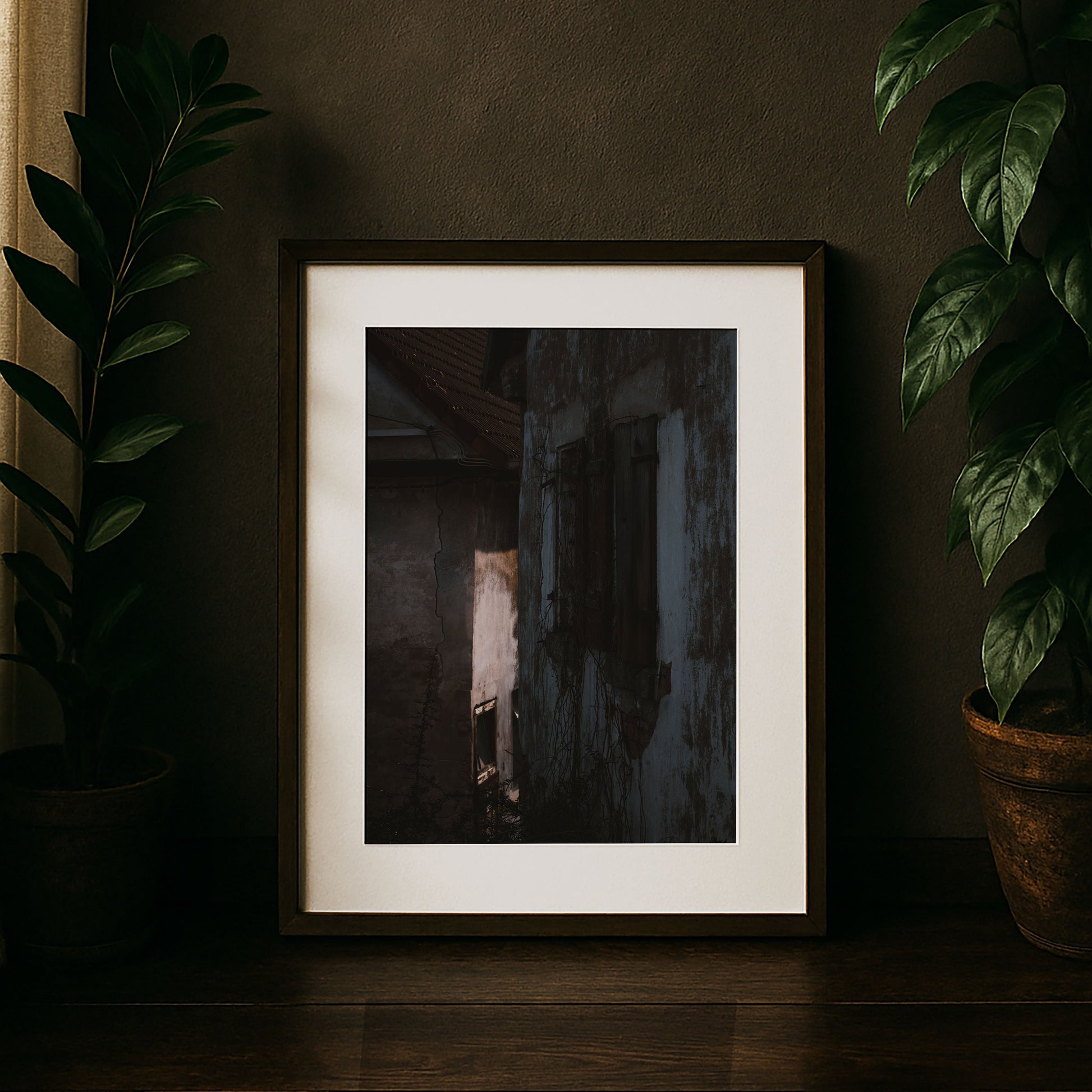 Ich habe dieses alte Haus auf einer Wanderung fotografiert, ohne wirklich etwas Bestimmtes zu suchen. Gerade das hat es für mich so besonders gemacht. Zwischen den rissigen Mauern und den geschlossenen Fensterläden fiel ein einzelner Strahl Licht auf die Fassade. Für einen Moment wirkte es, als würde die Vergangenheit selbst sichtbar werden. Für mich steckt in diesem Bild die Erinnerung daran, dass Schönheit nicht immer neu oder makellos sein muss. Manchmal liegt sie gerade im Verblassen, im Unperfekten, in den Spuren der Zeit. Als Print bringt es Tiefe in einen Raum und erinnert daran, auch die stillen Geschichten hinter den Fassaden zu sehen.