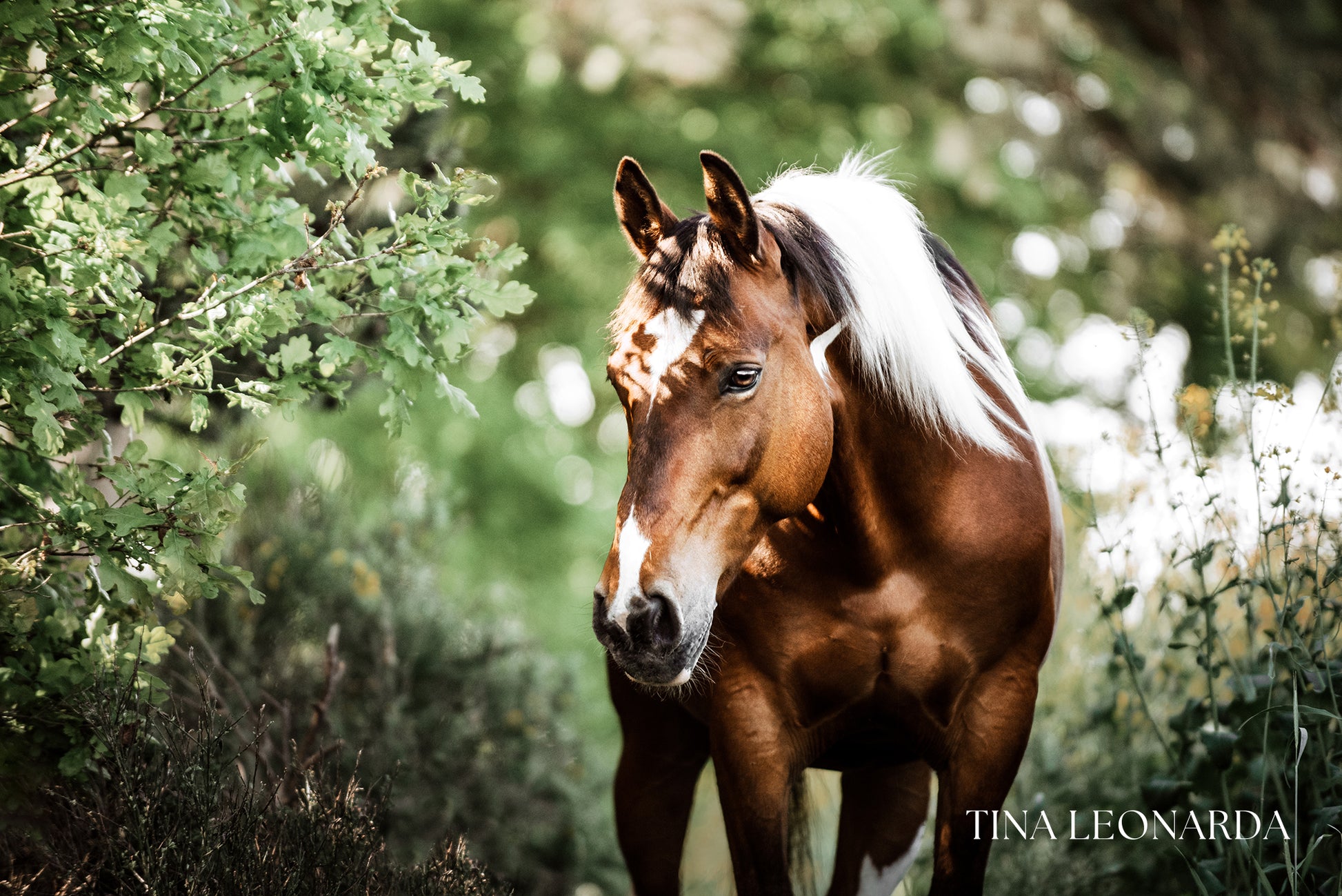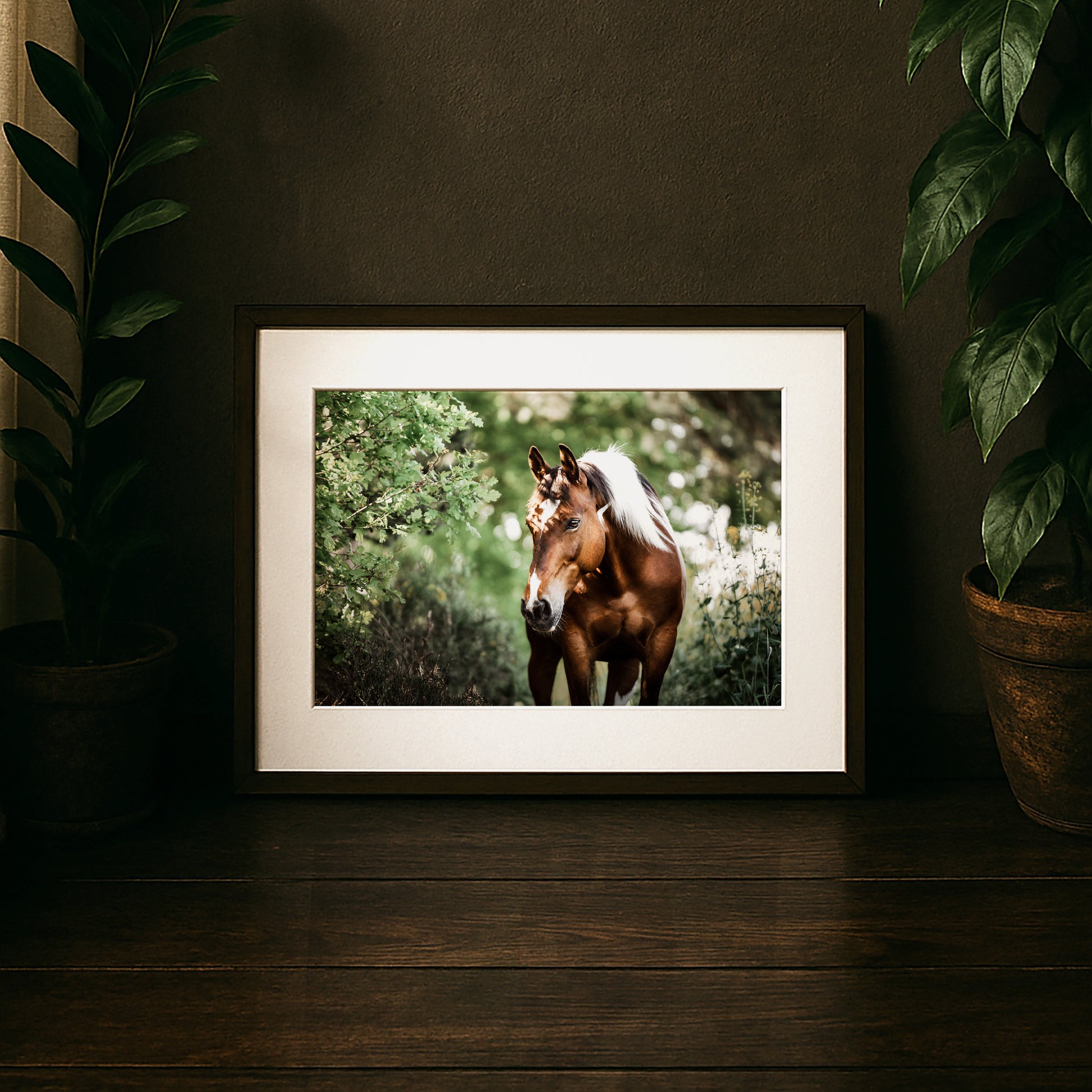 Im Schatten der Bäume steht dieses Pferd, stark und präsent, und trotzdem liegt in seiner Haltung etwas ganz Sanftes. Das Licht fällt durch die Blätter und spielt auf seinem Fell, als ob der Sommer einen Moment lang innehält. Für mich trägt dieses Bild genau diese Mischung: Wachheit und Ruhe, Kraft und Sanftheit zugleich. Wenn man es anschaut, erinnert es daran, dass man nicht immer laut oder groß auftreten muss, um Stärke auszustrahlen. Es bringt dieses Gefühl von Ausatmen in einen Raum, ein bisschen wie ein stiller Anker, der daran erinnert, im Moment zu bleiben.